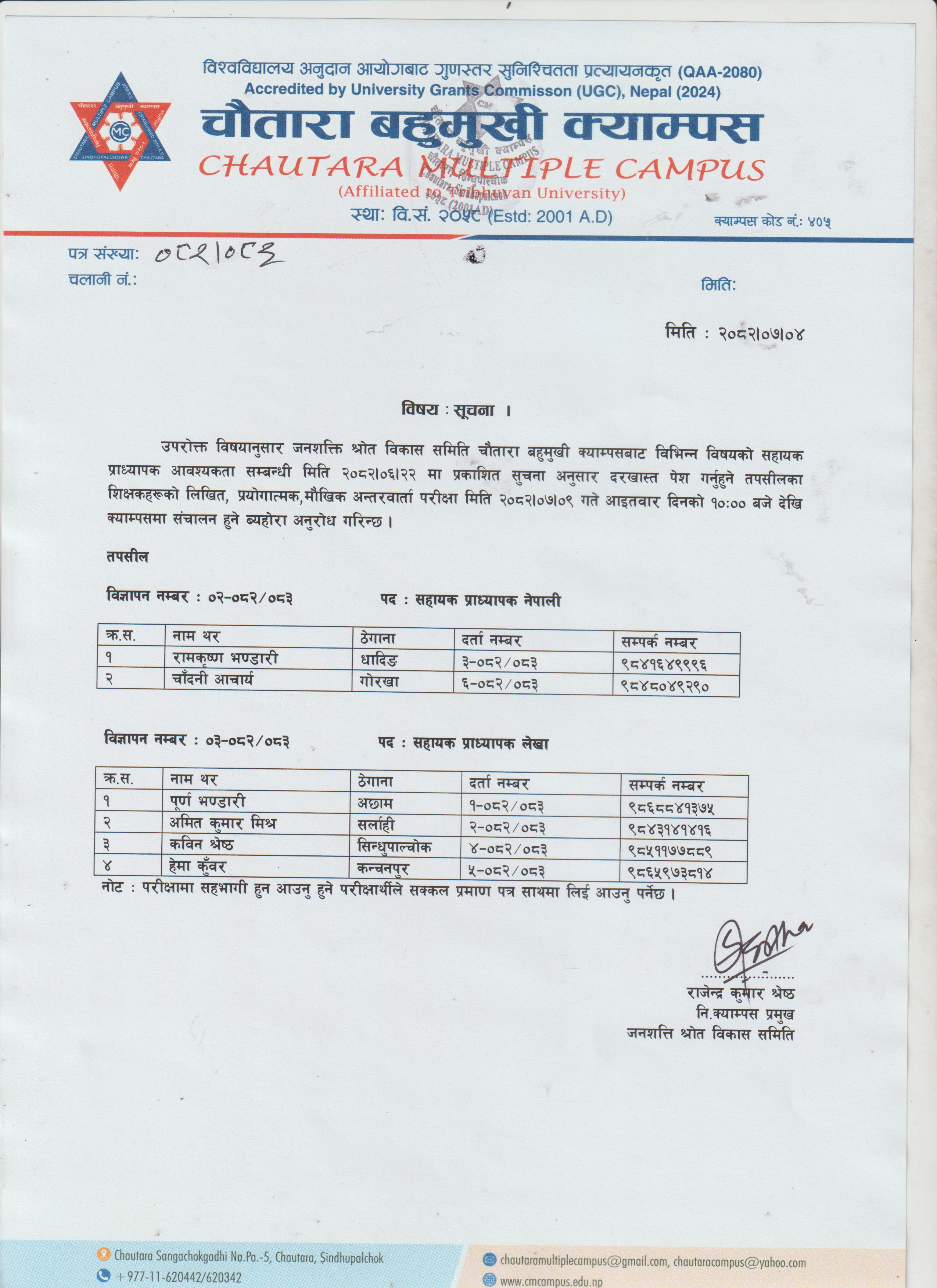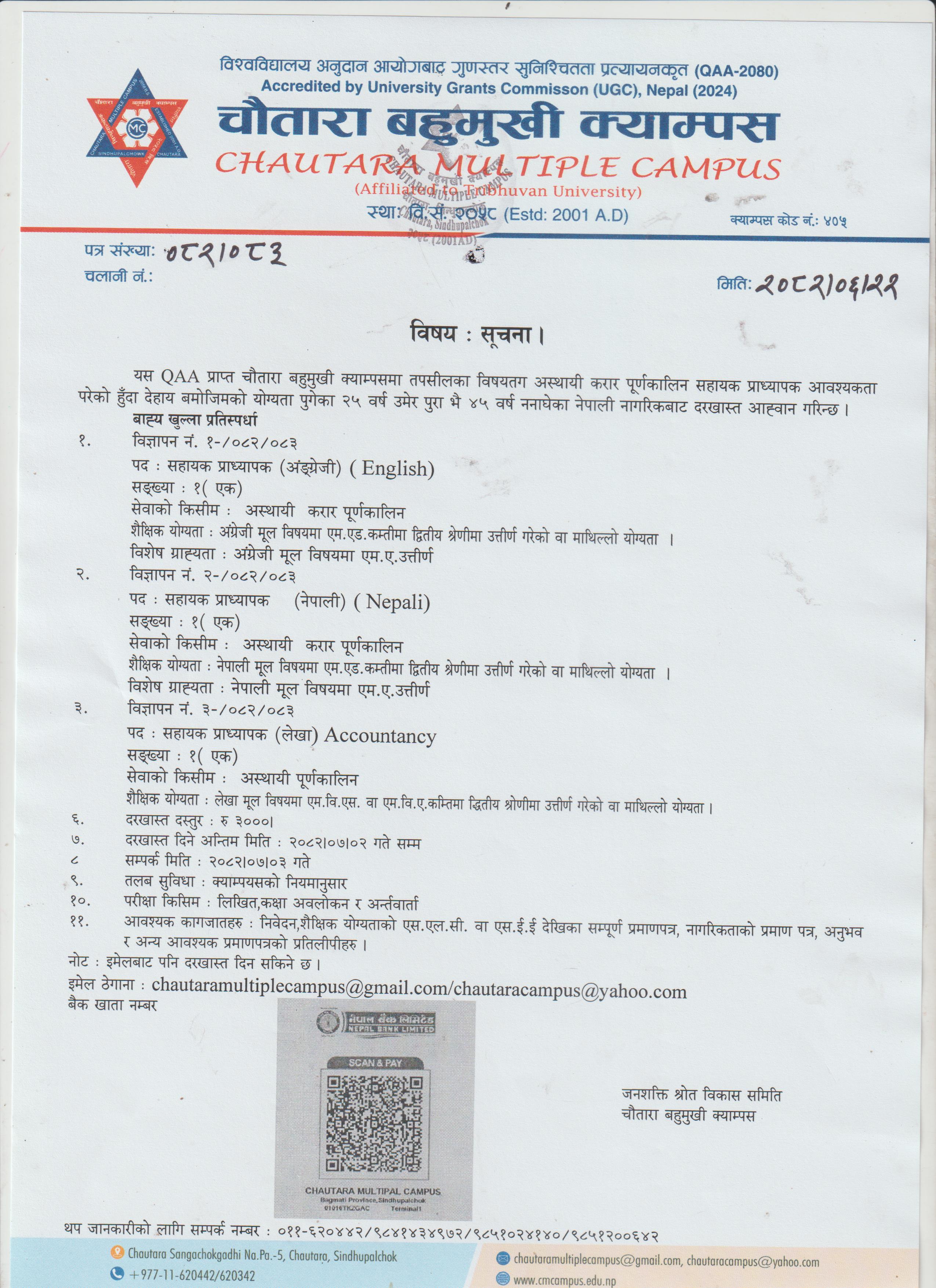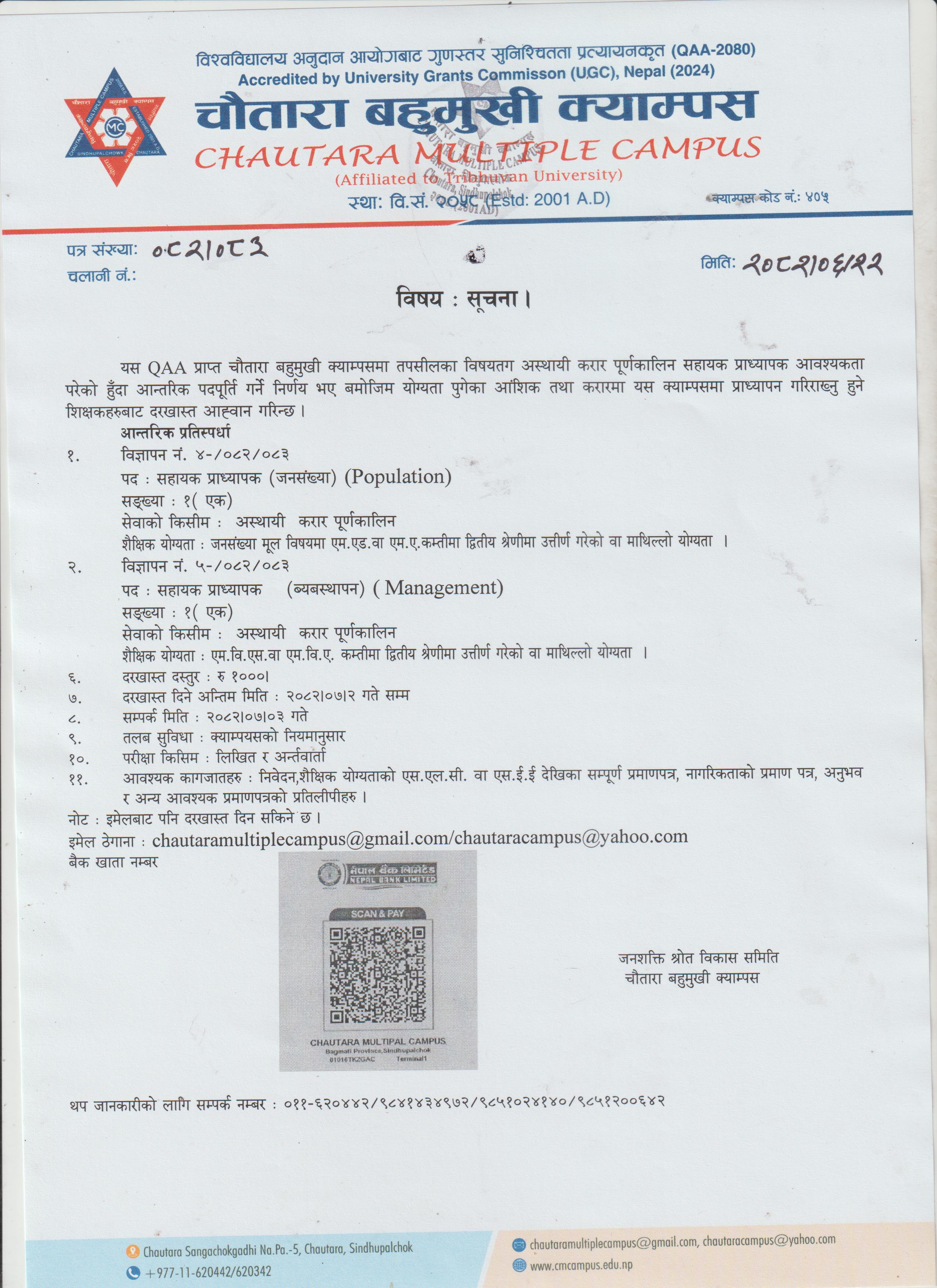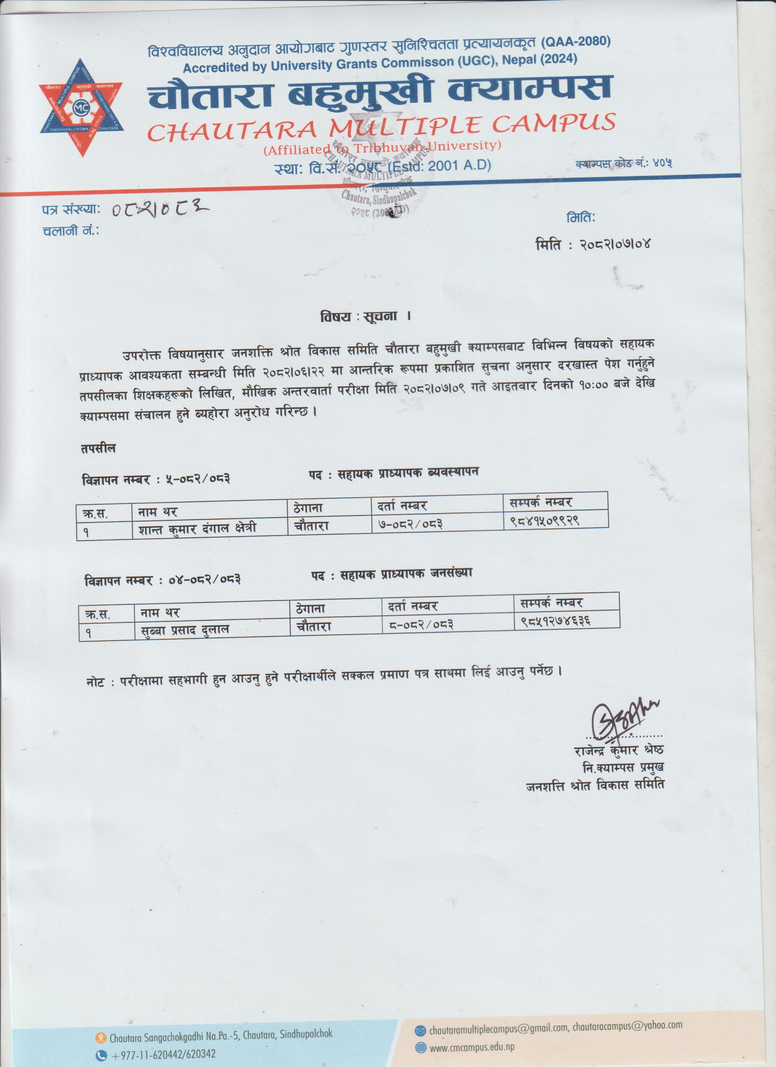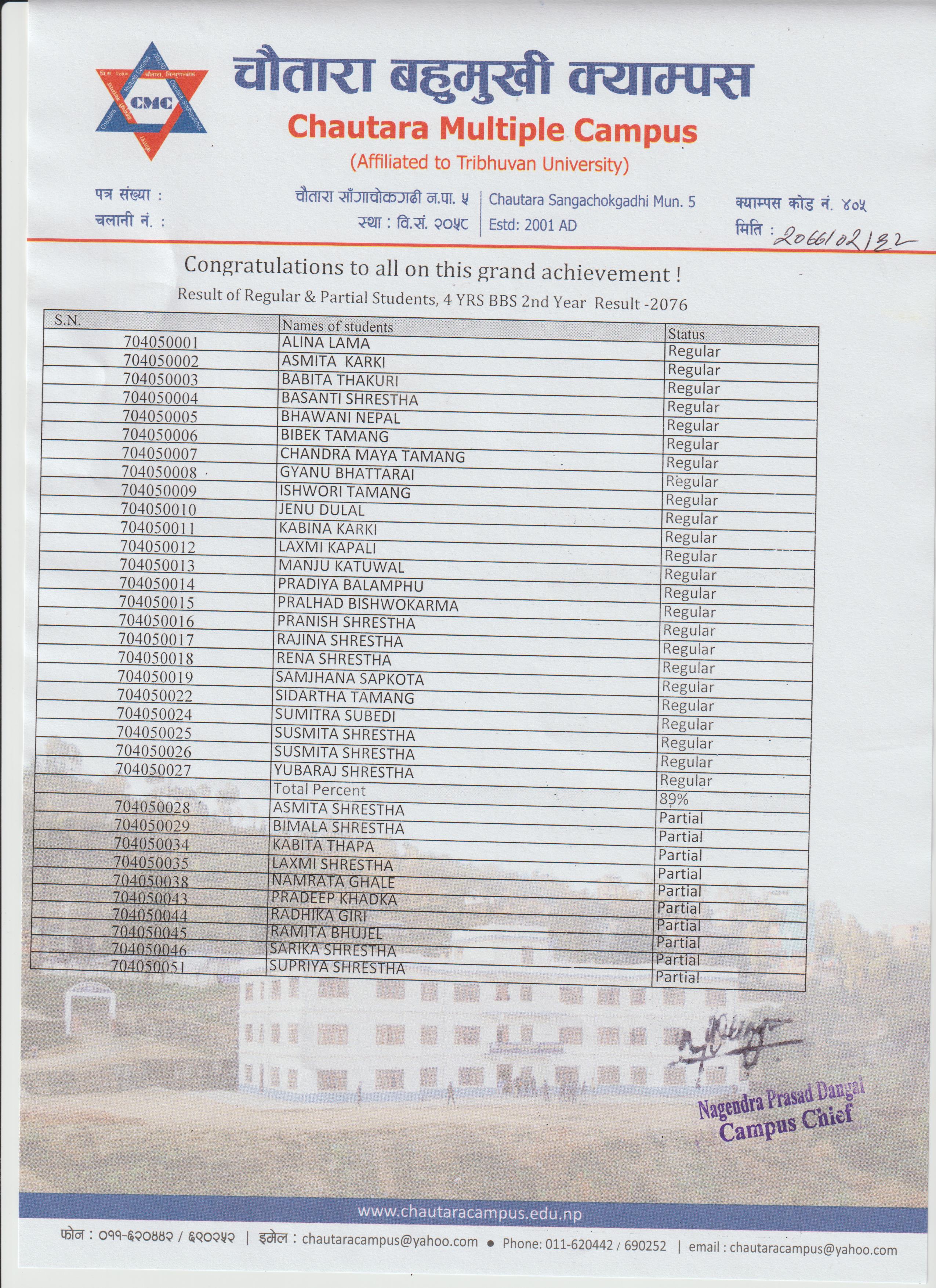 Chautara Multiple Campus (CMC), one of the sought-after colleges in Sindhupalchok district is the utmost pride of Sindhu dwellers since 2058 B.S., and has been quenching the thirst of education to its pupils of different backgrounds.